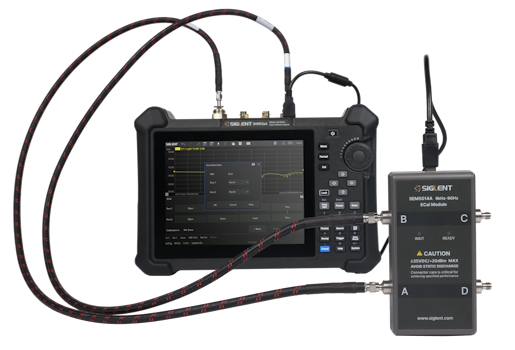 Analizzatore di reti vettoriale portatile, da 30 kHz a 14 GHz, 2 porte, 110 dB di dinamica, risoluzione 1 Hz.